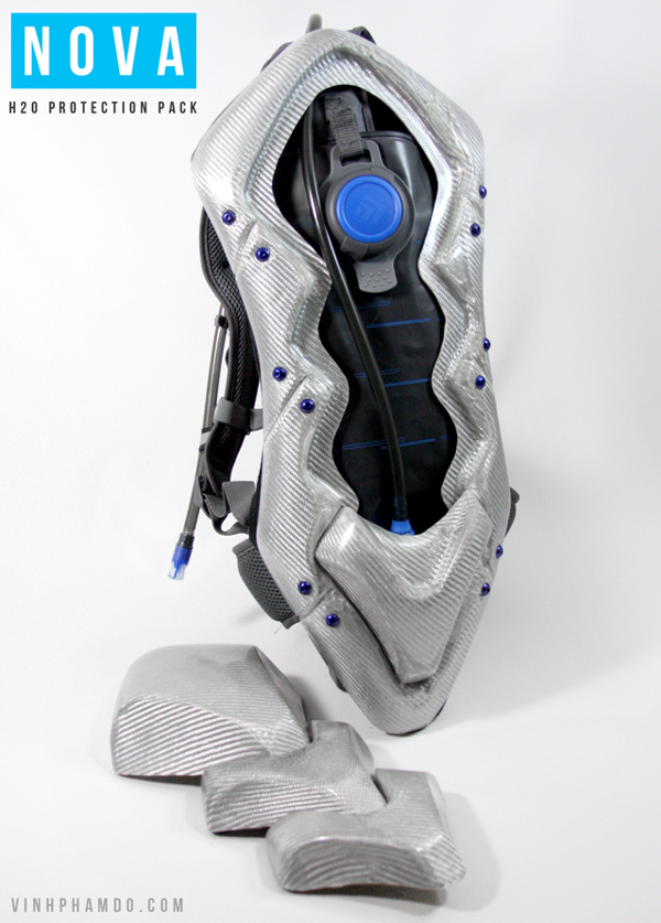 受到科幻电影中的宇宙飞船和外星人的启发,来自美国加州的工业设计师Vinh Phamdo设计了一款名为「Nova H20」的护甲背包,给背包者提供多种保护。